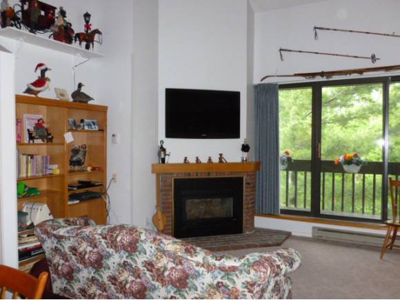 Spacious two story three bedroom/den condominium on the top floor of E Building. Open floor plan with cathedral ceilings, private balcony and gas fireplace. Outdoor swimming pool and tennis courts, indoor hot tub, steam and sauna. Low association fees, no assessments and great rental potential. Sold equipped and furnished.