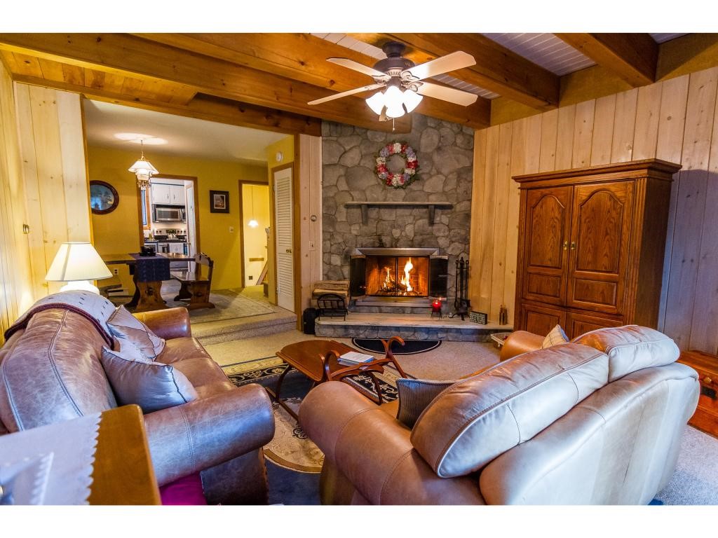 Updated four bedroom Colony Club townhouse. Nice low fees, so you can enjoy the convenience of a condo with as much space as a house. This nicely appointed townhome features a fully finished walkout level, complete with two bedrooms, family room and bathroom, while the upper levels include a completely renovated kitchen with stainless appliances, wine cooler and Corian countertops, living room with vaulted ceilings, exposed wood beams, knotty pine walls and an elegant fireplace with marble and faux-stone hearth, two large bedrooms with vaulted ceilings, including an en-suite master, spacious mudroom and new French doors for access to a private deck with lovely mountain views. A very appealing townhome located on a quiet road in the heart of Killington, ideal for residential or vacation use.