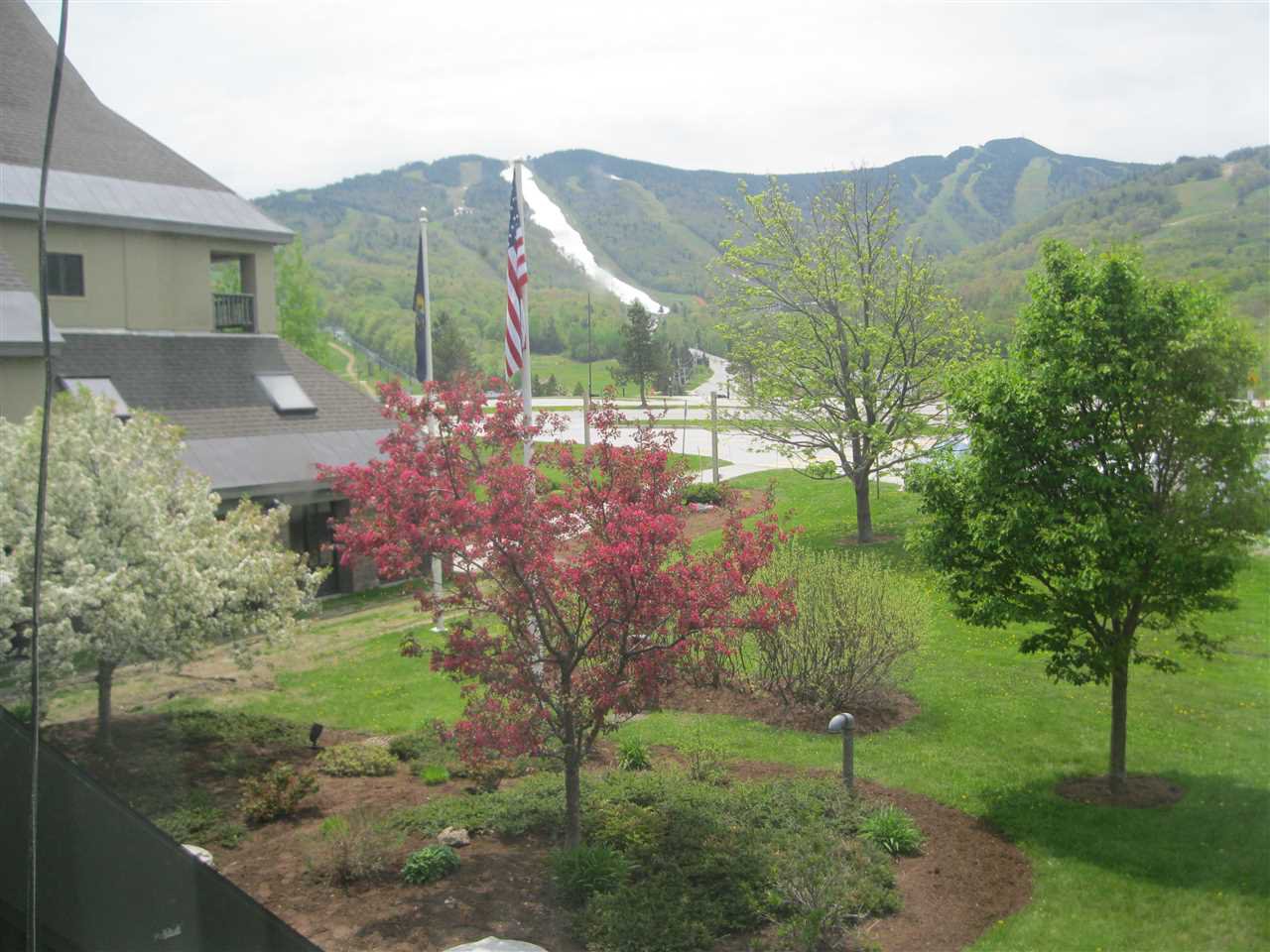 Mountain Green, Bldg 3 (main bldg.) on "front-side of bldg!! 2BR/2 full Baths. SKI TRAIL VIEWS from bedrooms and living area. "End/corner" unit with covered deck. Wood burning fireplace. Turn key. Long mud-room entry hall way. On site: elevator, racquetball/basketball court, ski shop, seasonal restaurant, indoor lap pool, outdoor inground pool, common laundry room. On shuttle service. Walking distance to the Summer Adventure Center (ropes course, coaster ride, zip line, etc.), summer Saturday concerts, etc.