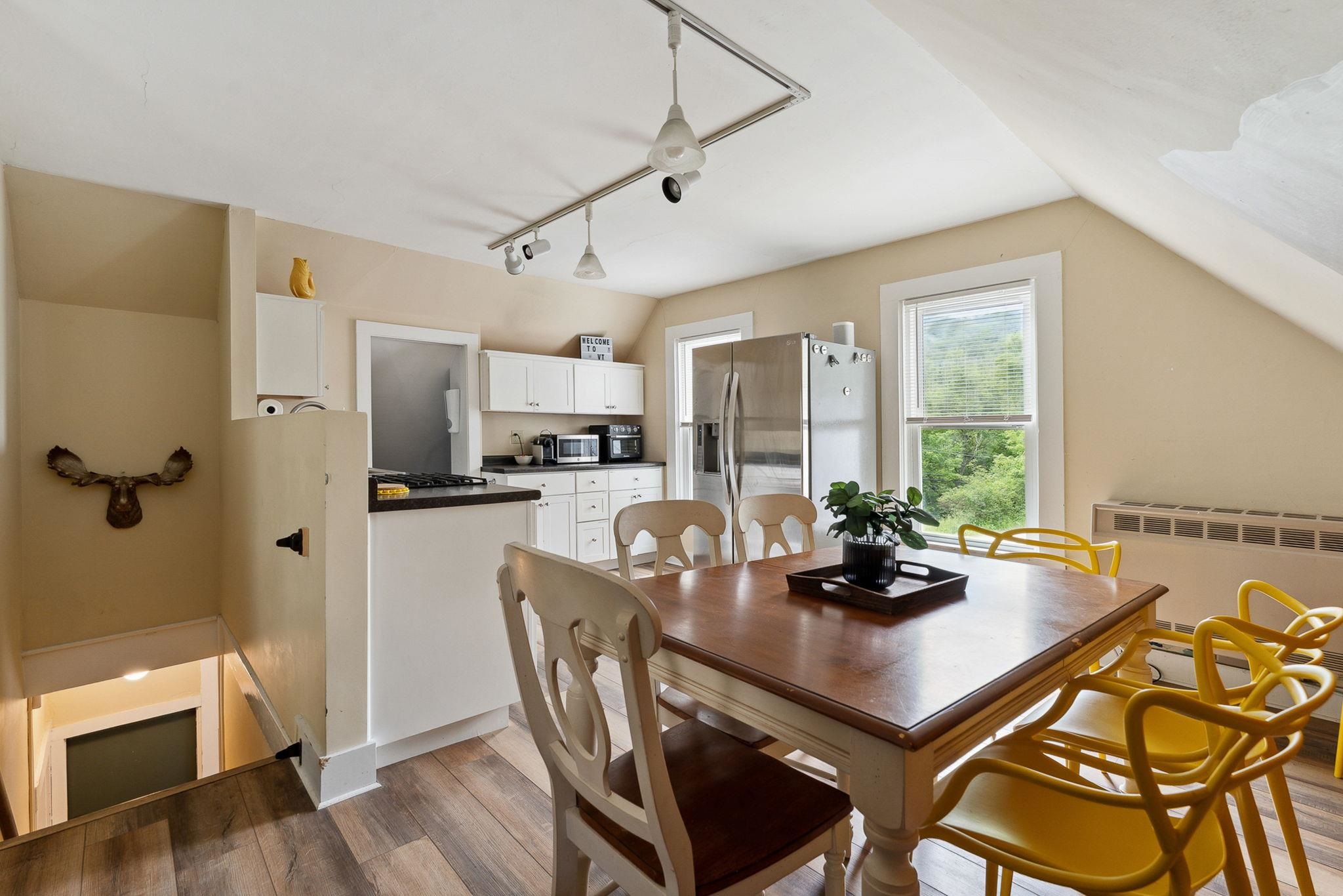 Classic Farmhouse character combines with modern systems and amenities in an unbeatable location midway between historic Woodstock and Kellington Vermont Offered fully furnished and equipped with a strong Airbnb/VRBO history covering the costs of ownership relying primarily on income from the separate second story unit as the owners lived on the main level except when traveling on business. The Town of Bridgewater has no zoning regulations enabling the property to be used in a variety of ways that would customarily require multiple permits. Privately sited above the Ottauquechee River and across from Long Trail Brewing the Upper Road location is the gateway to a sparsely populated near wilderness accessible by the VAST snowmobile system. Lakes along Route 100 South offer fishing, swimming and boating opportunities a few miles away and Okemo Mountain and Saskadena Six are each within a 25 minutes drive. A perfect chance to enjoy Vermont in all seasons for free...or share the space with friends and family.