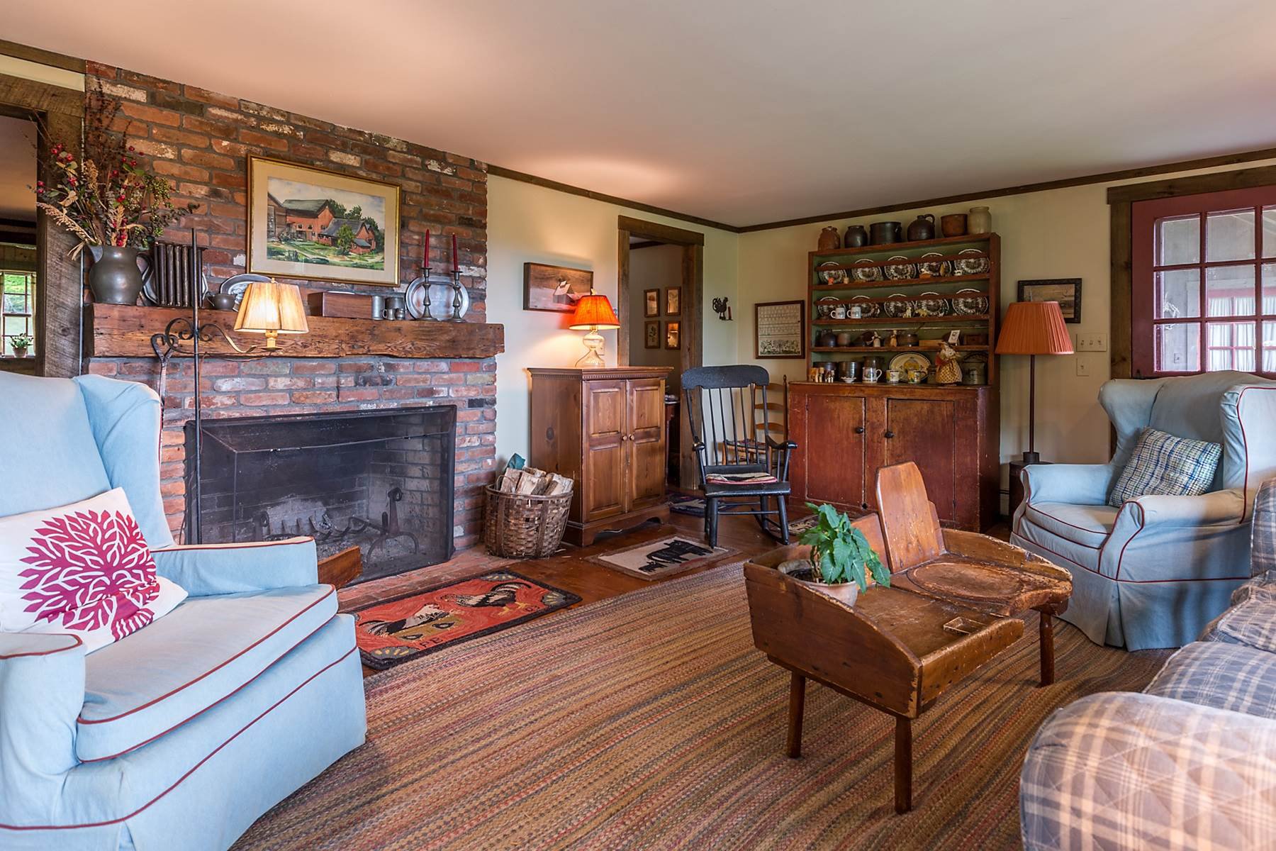 This lovely reproduction extended cape enjoys spectacular long range views over rolling green meadows . Meticulous care has been taken to create the feeling of an antique home while providing all of the modern amenities . The grounds are beautifully landscaped complete with perennial beds, stone patio with arbor , stone walls and a pond. The floor plan provides spaces for easy entertaining . The Summer Room with its outstanding views becomes a Winter Dining Room complete with a cozy fireplace .